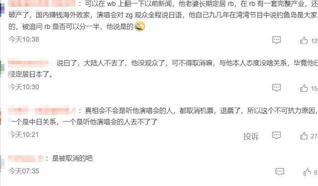 他定居了日本也许并不好过,在那里并没有好友和家乡的氛围,弹丸之地,要吃的没吃的,要喝的就剩某某废水了,能对身体有什么好处。 虽然已经说明了是不可抗拒因素,但是这波操作属实败坏人缘,既然想开演唱会,太想见粉丝了,希望每一场演唱会都能在咱们国家开。